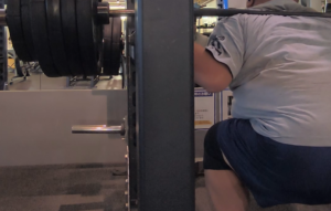 バーベルを担いで